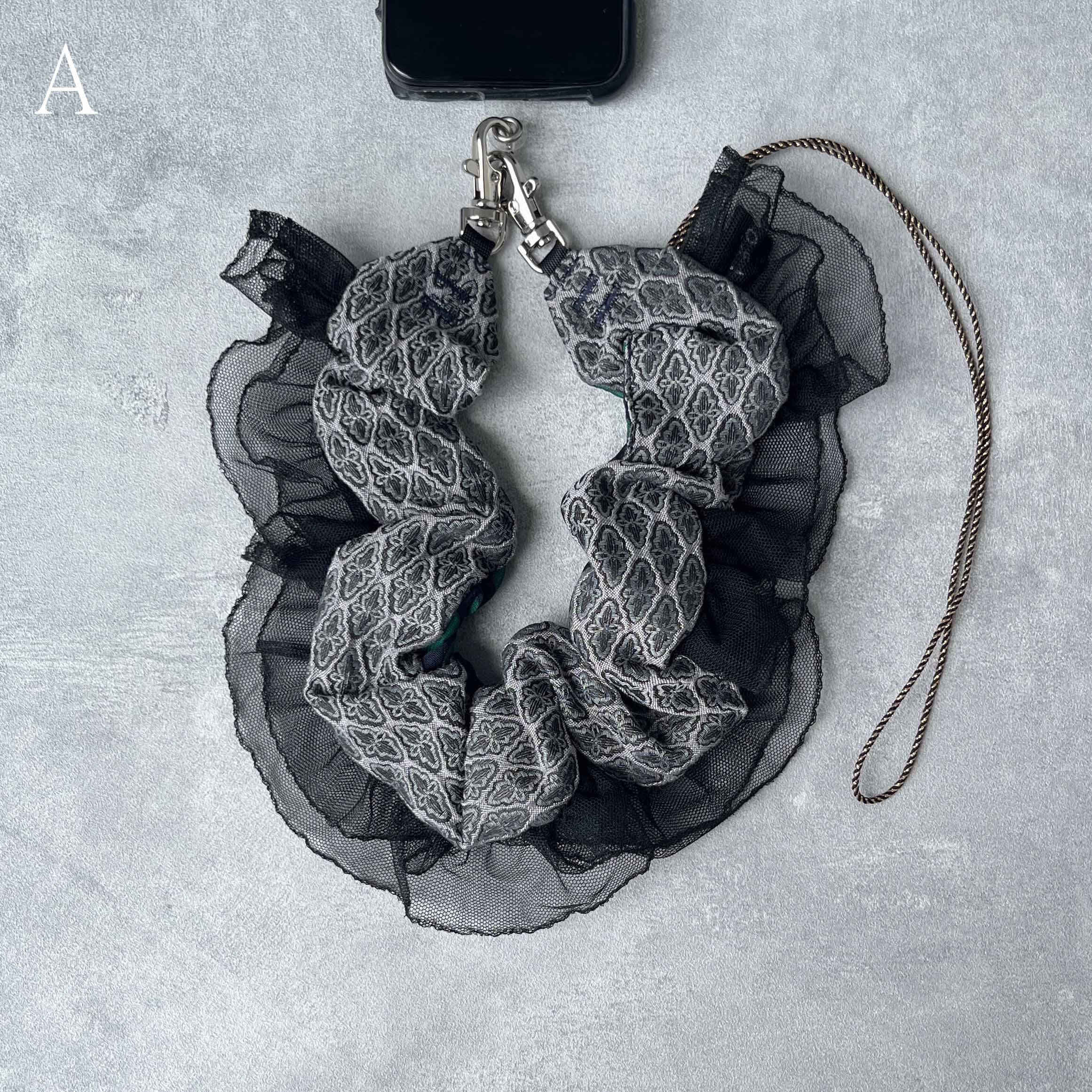 ボリューム感の可愛い柄生地とレースを組み合わせたストラップです。