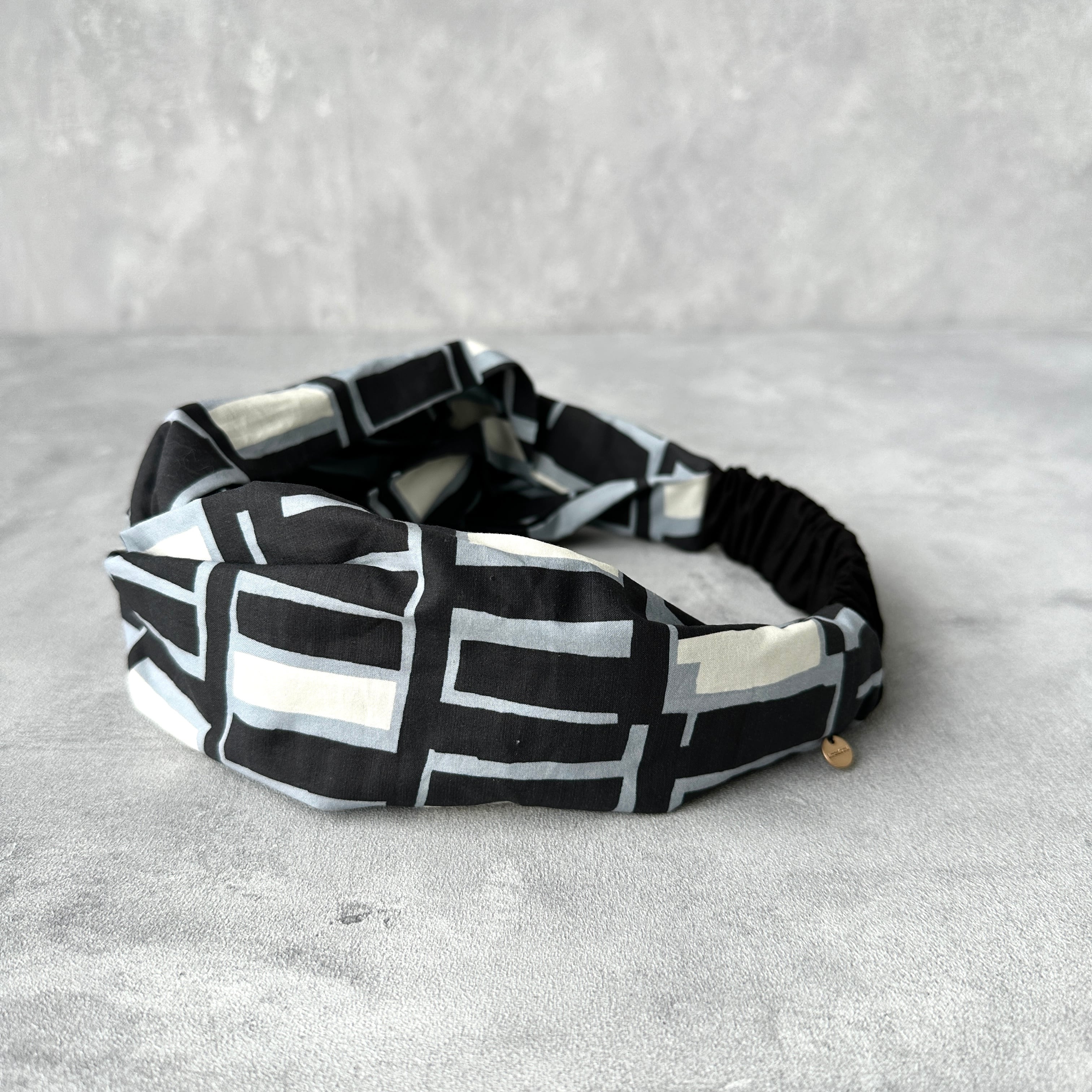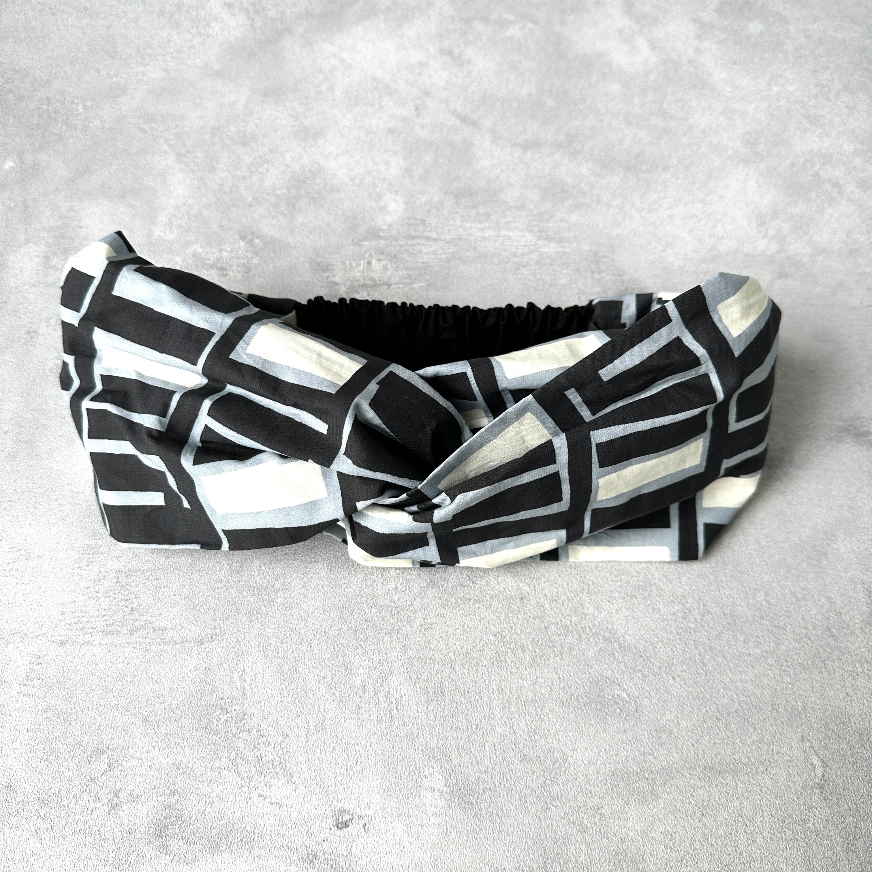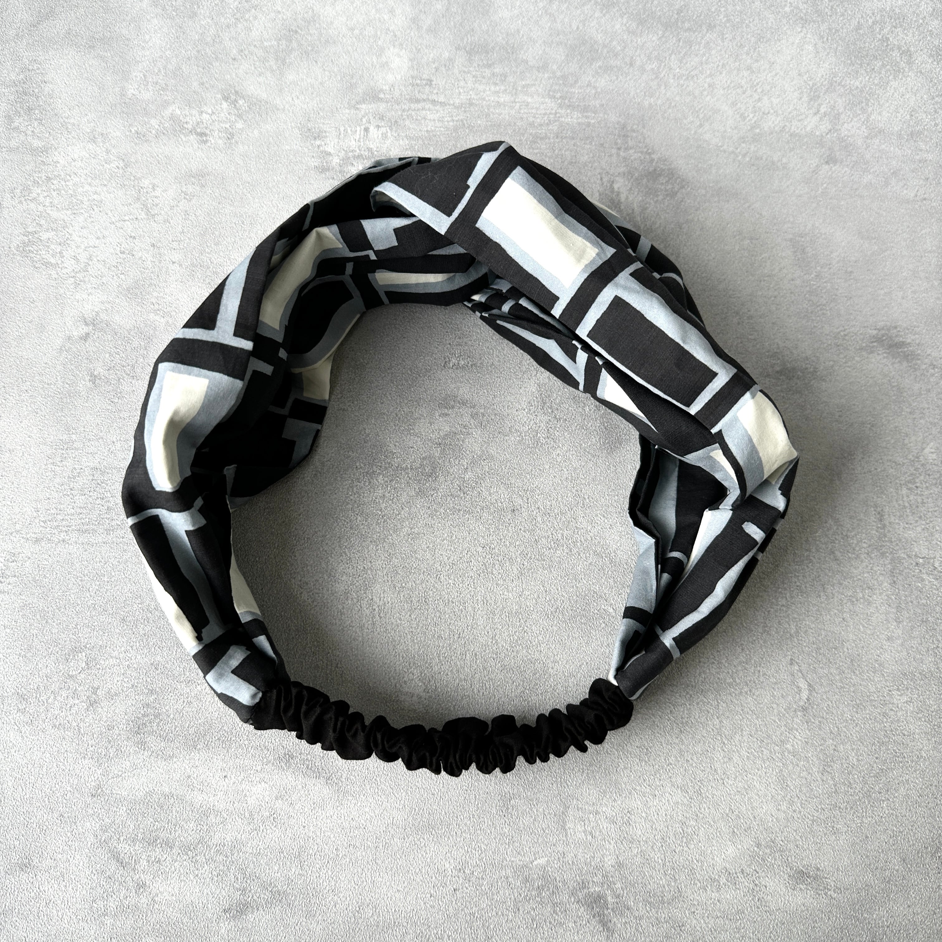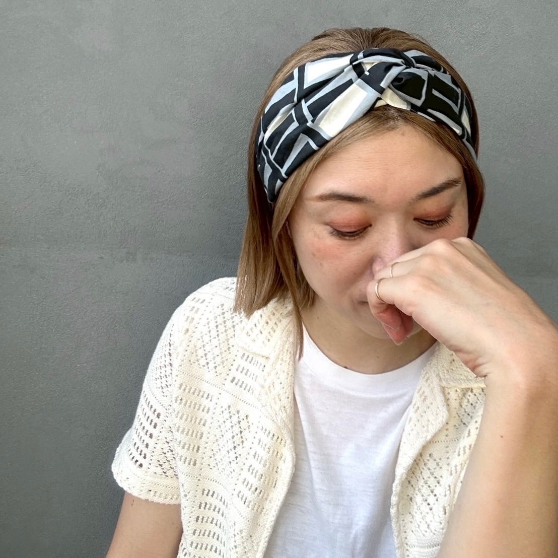 モノトーンの幾何学柄が目を引く大人モードなターバン。
