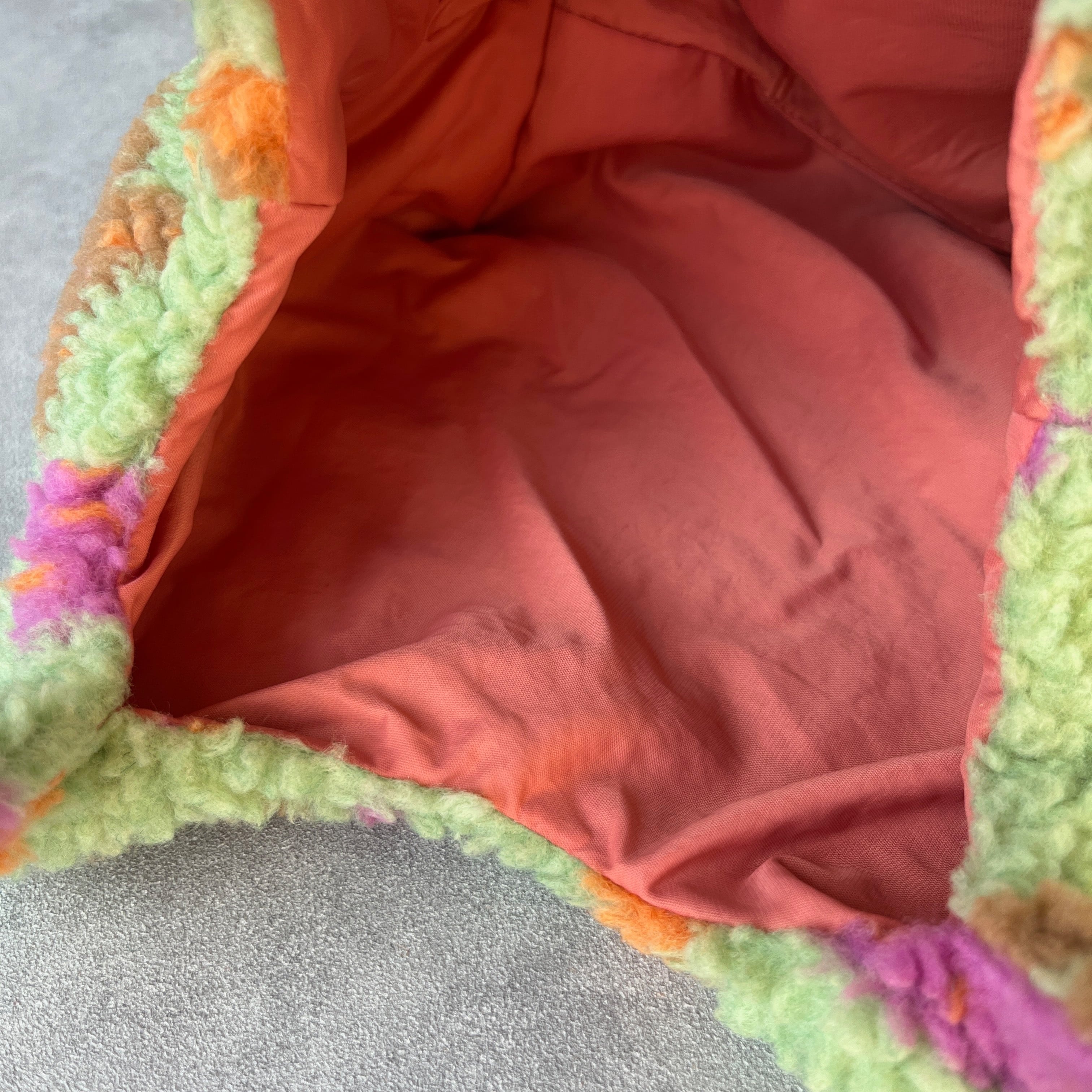 カラフルな星柄のボアミニバッグ。