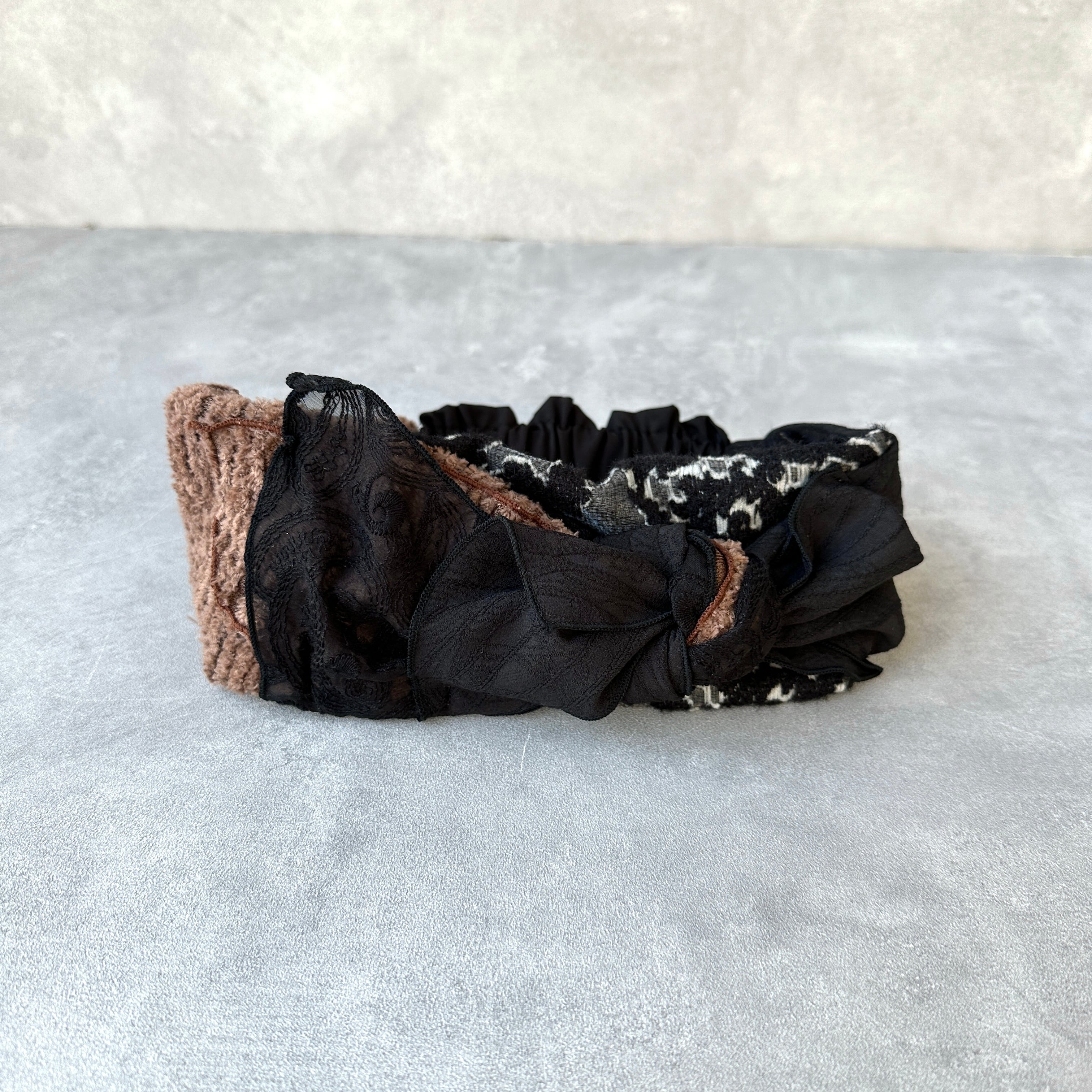 ブラックを基調にレースやファーを組み合わせたミックスターバン。
