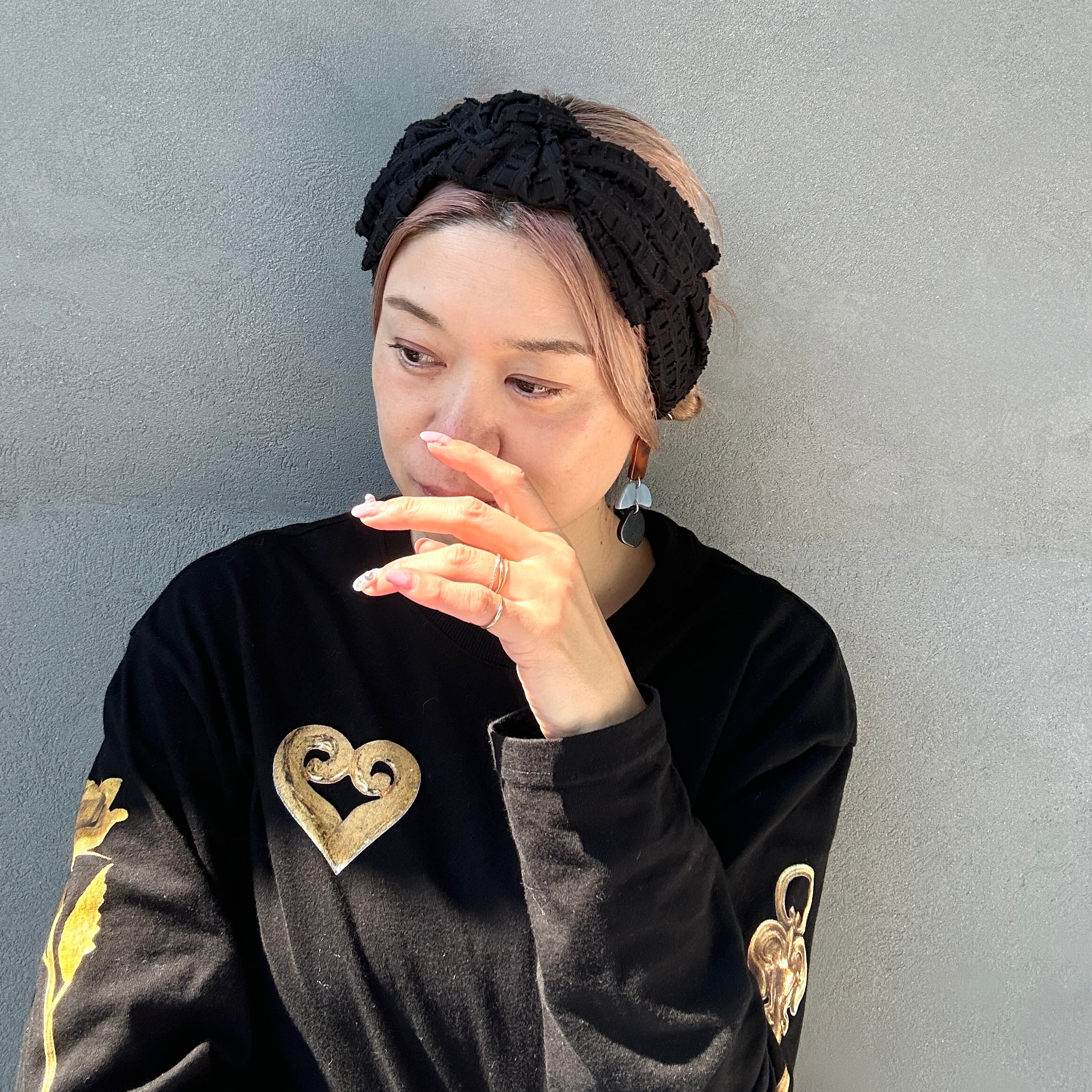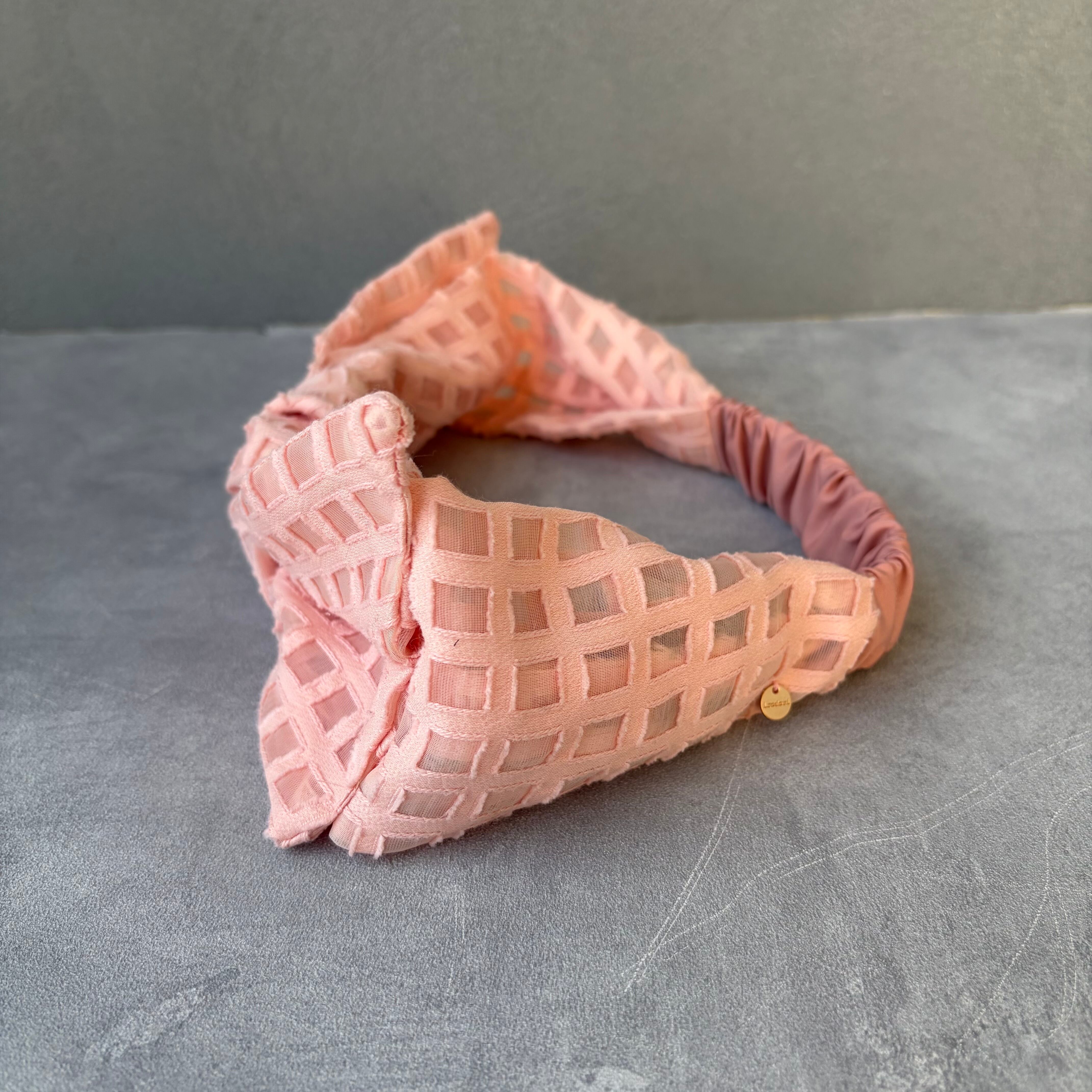 抜け感のあるシアーチェックを使ったターバン。
