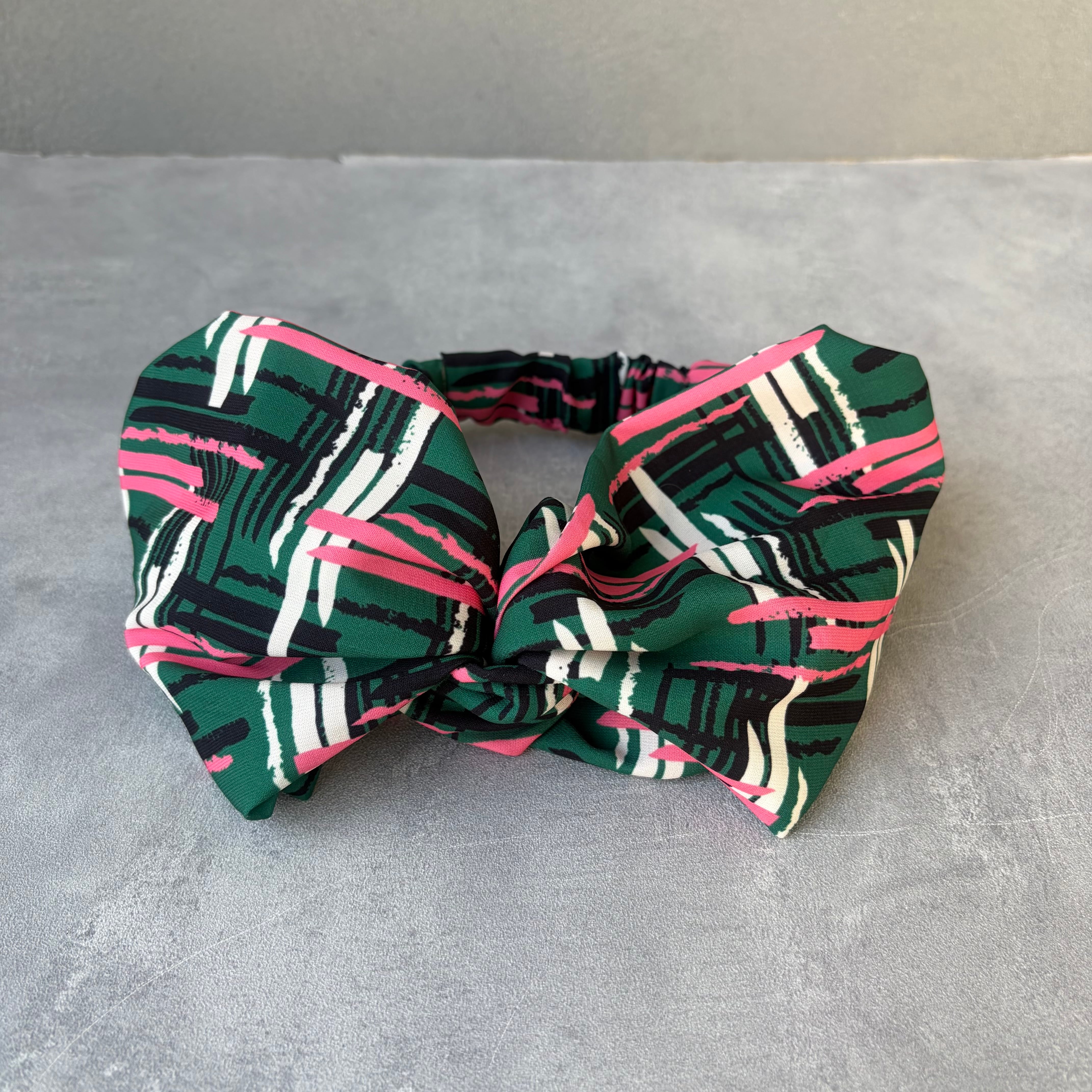 グリーンベースに3色のランダムラインが映えるデザインターバン。
