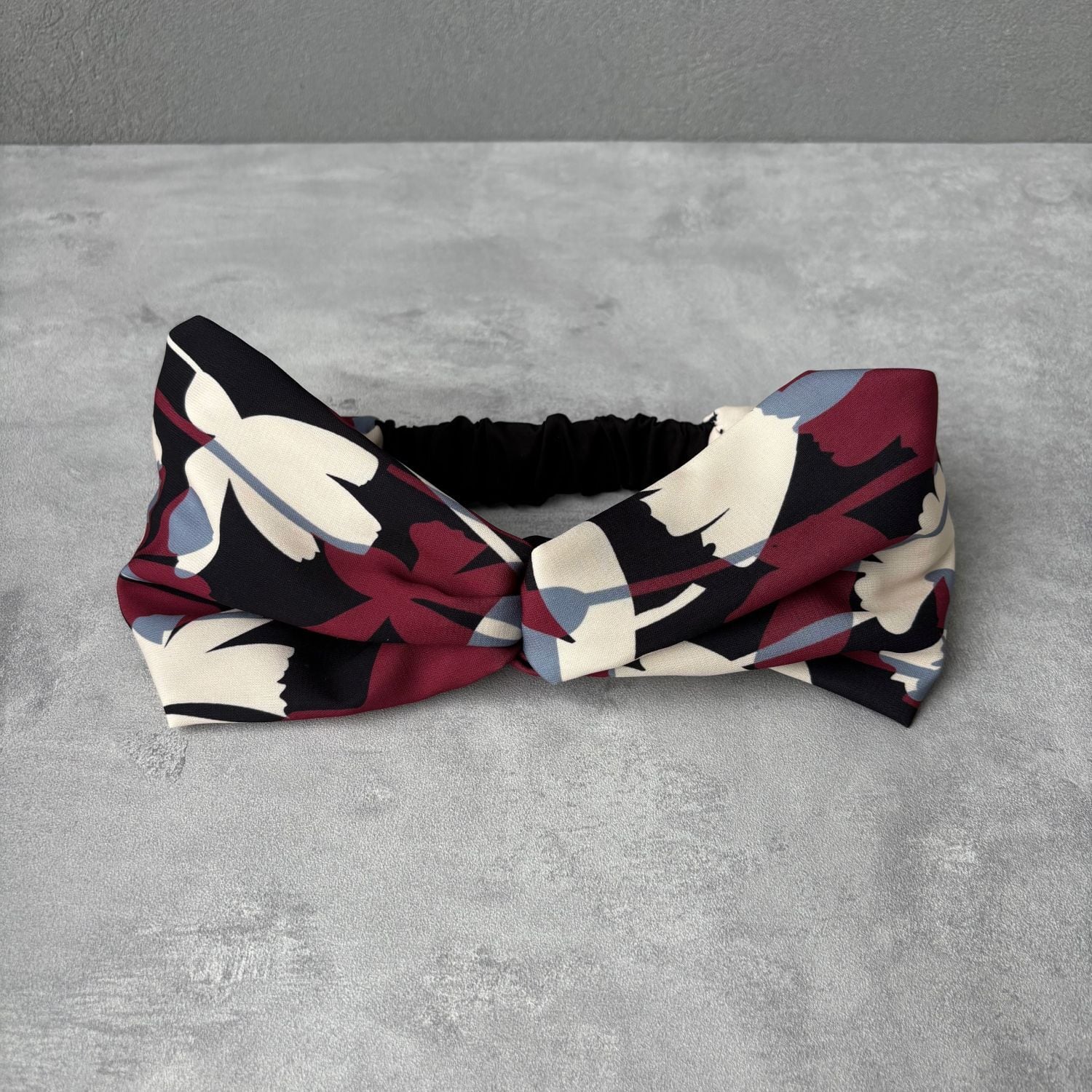 レトロな雰囲気のある大人な花柄のヘアターバン。