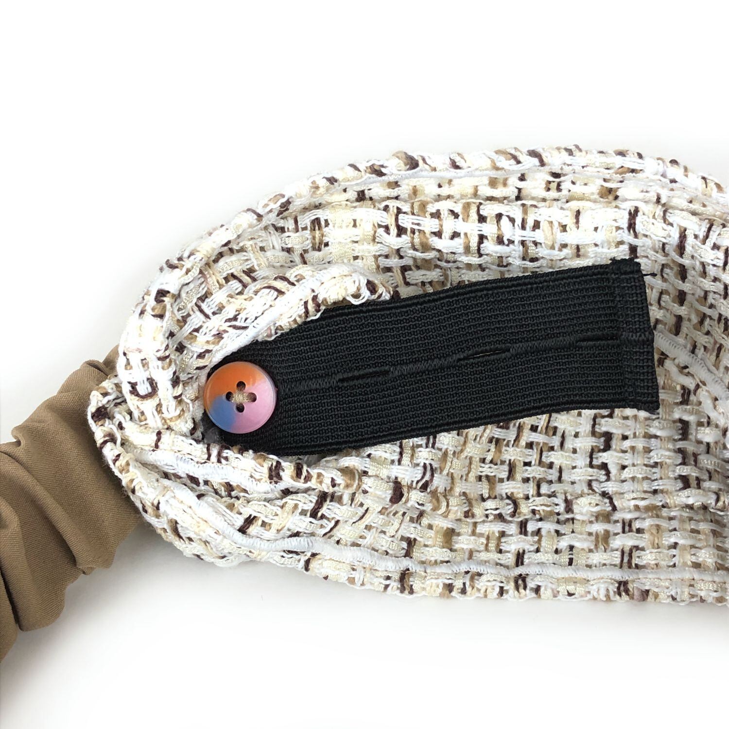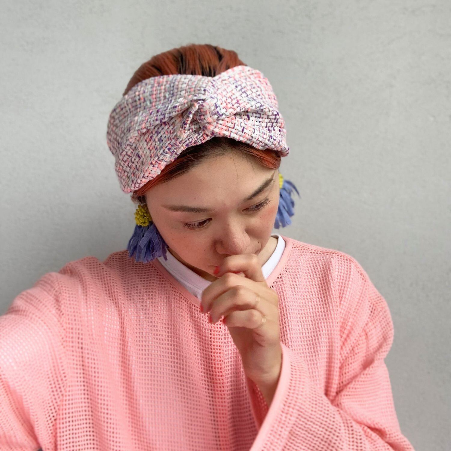 ボリューム感が可愛いツイードのヘアターバン。