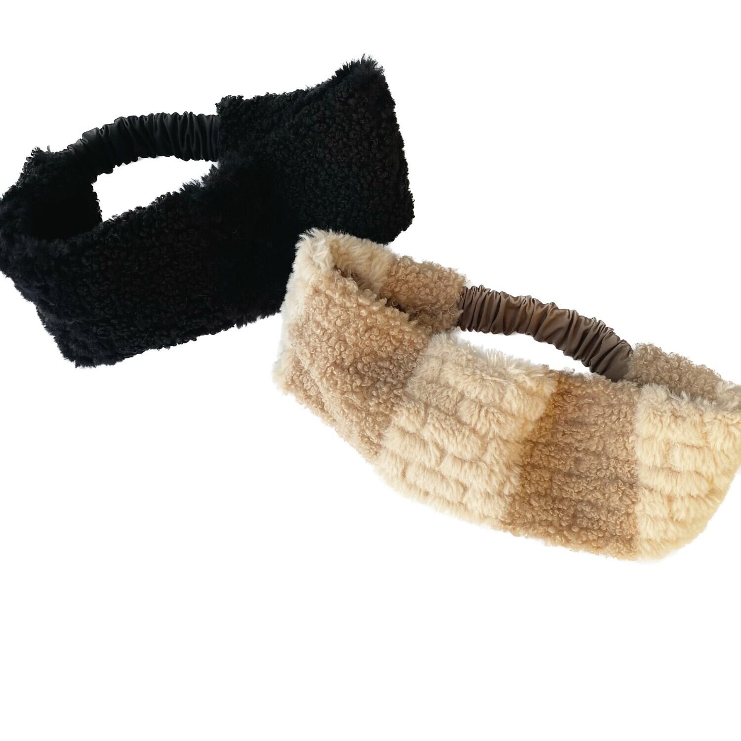 プードルボアとファーを組み合わせたイヤーマフヘアターバン。