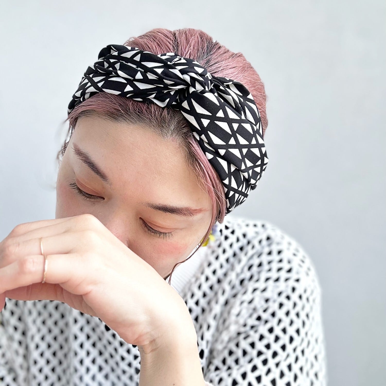 モノクロの幾何学模様がお洒落なヘアターバン。