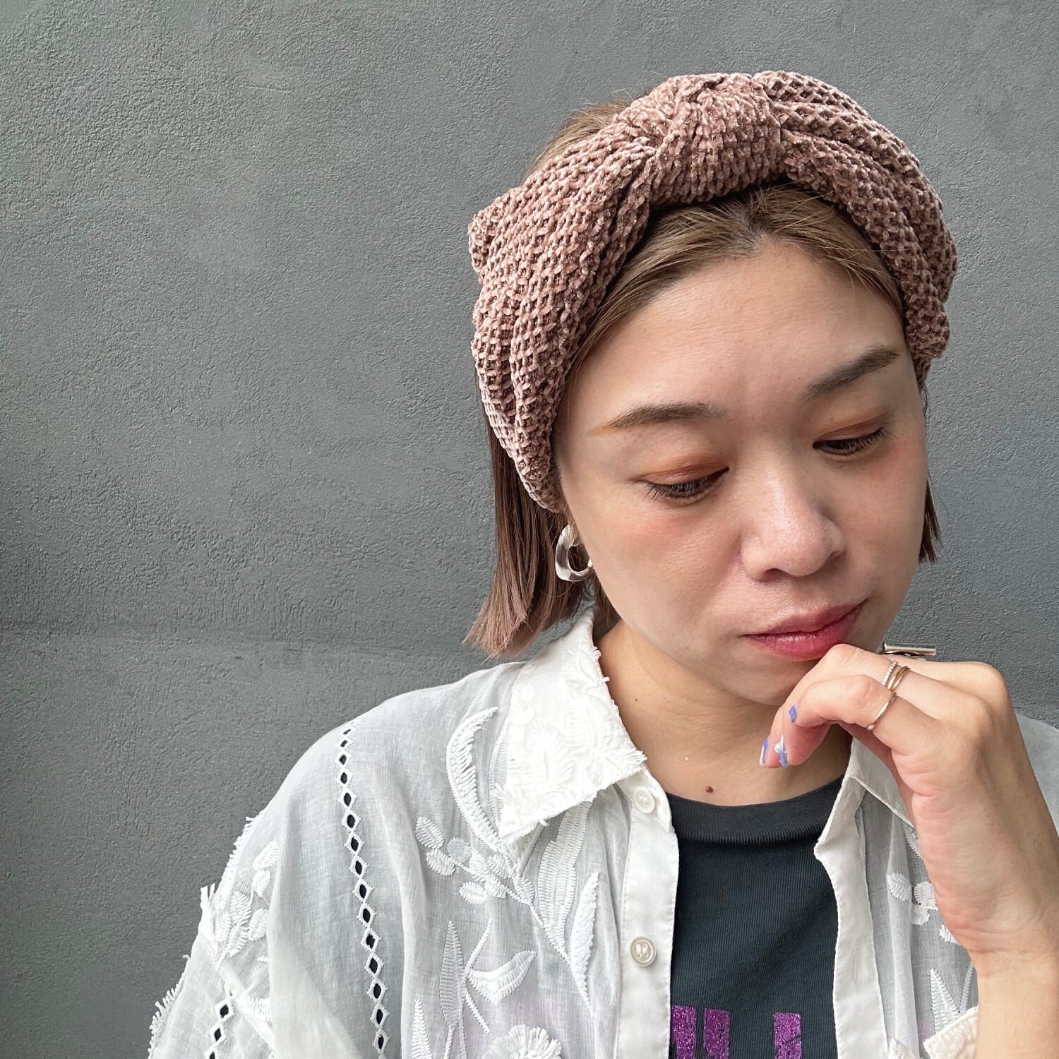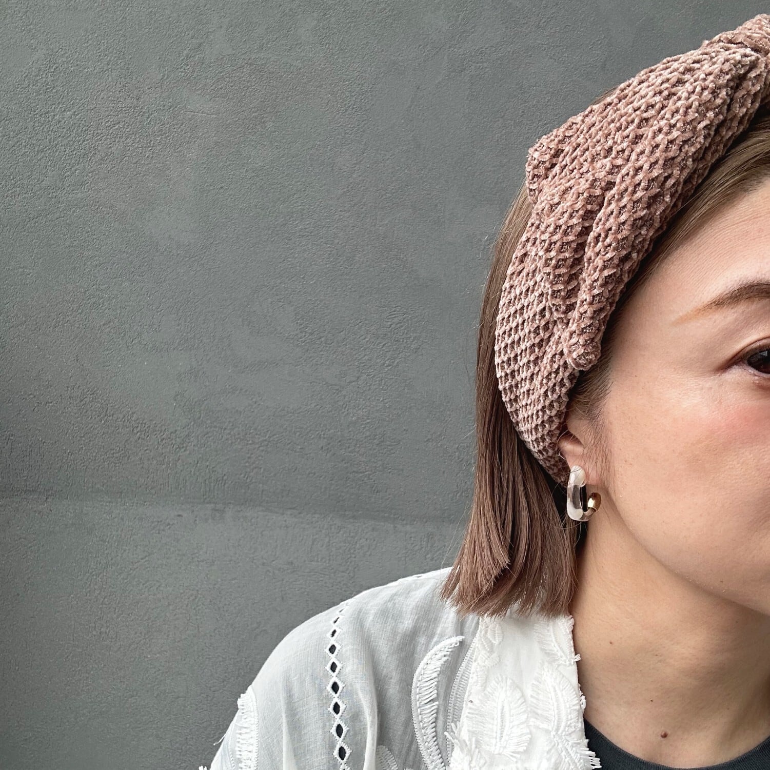 ワッフルモール素材が可愛いヘアターバン。