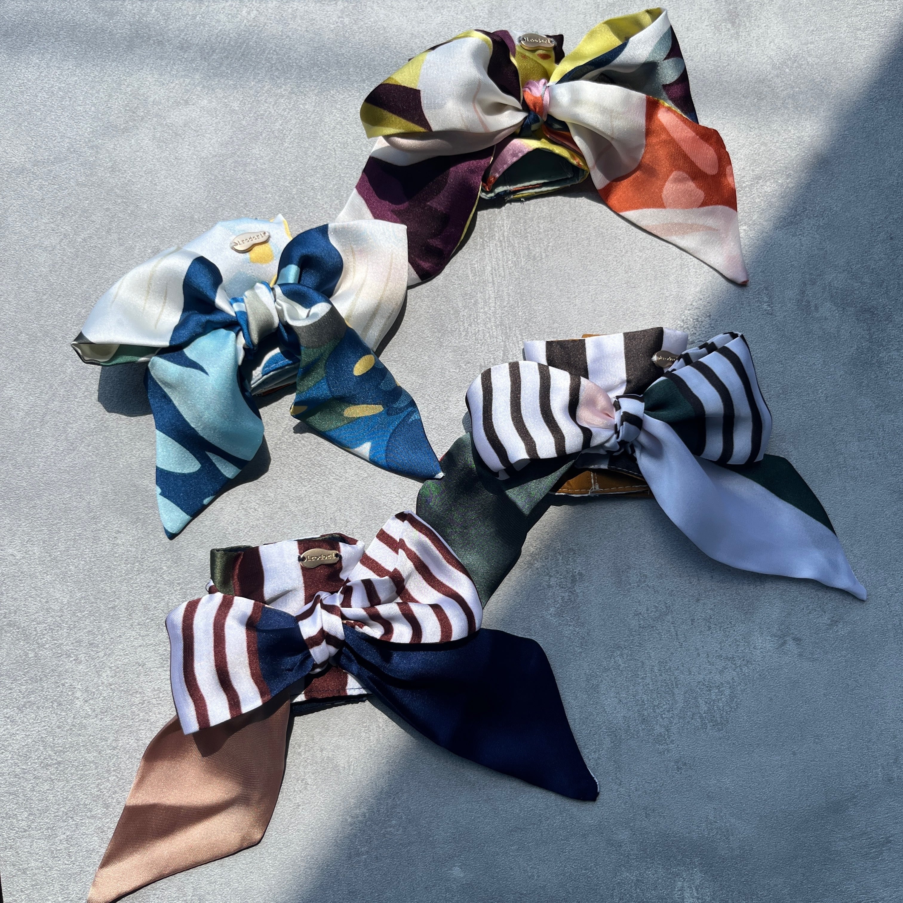 リボンは垂らしたり、片リボン結びにしたり、髪に巻き付けたり。
