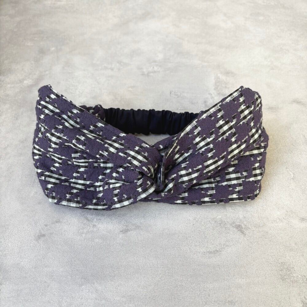 チェックと立体感のある千鳥格子柄を組み合わせたヘアターバン。